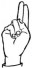 На ћирилици написано БОЈАН МИЉУШ састоји се из 10 слова [?]. Исписано ћириличном једноручном азбуком за глувонеме:
